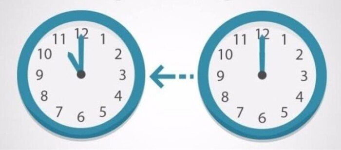 - نقوم بتأخير الساعة 60 دقيقة عند الساعة 12 صباحا لتصبح الساعة 11 مساء.
