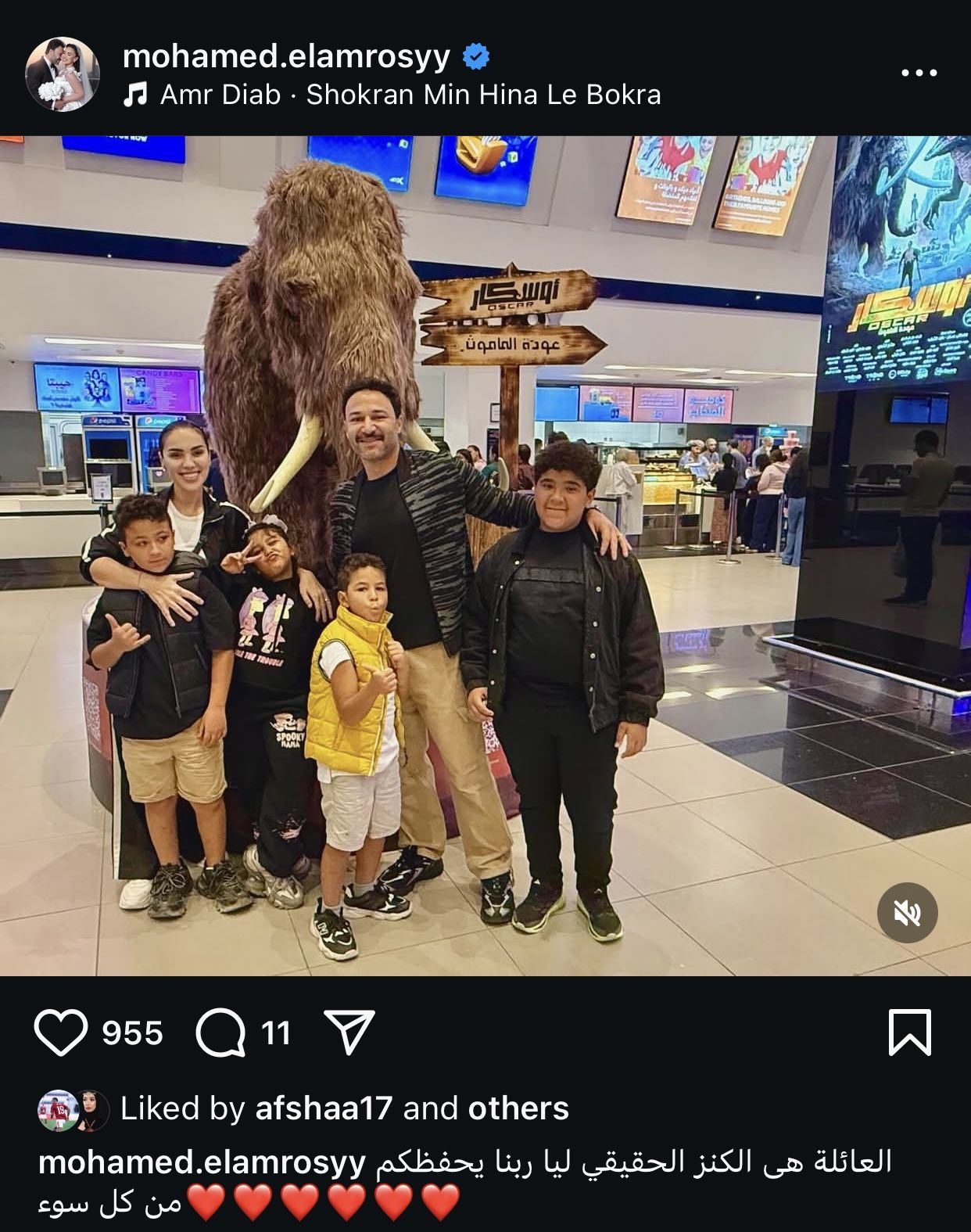 وعلق العمروسي على الصورة: “العائلة هي الكنز الحقيقي ليا، ربنا يحفظكم من كل سوء”.