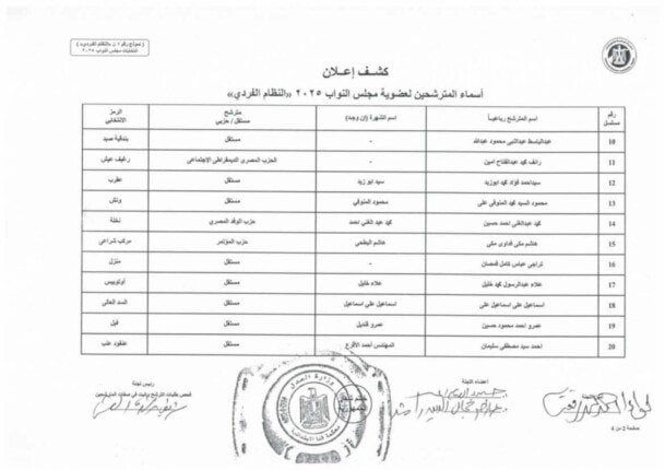 وتبدأ مراحل التصويت على النحو التالي: المصريون بالخارج: 7 و8 نوفمبر، المصريون بالداخل: 10 و11 نوفمبر، جولة الإعادة: 3 و4 ديسمبر.