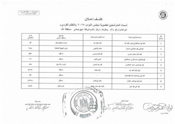 أعلنت محكمة قنا الإبتدائية برئاسة المستشار إسماعيل زناتي كشوف أسماء المرشحين بأوراقهم لخوض انتخابات مجلس النواب 2025، حيث تم استقبال 135 طلب ترشح بالنظام الفردي على مستوى 4 دوائر انتخابية بالمحافظة.