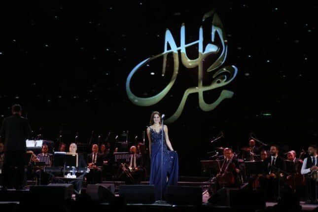 وقدمتِ آمال ماهر بمشاركة الفرقة الموسيقية بقيادة المايسترو تامر فيظي، مختارات من مؤلفات الطرب العربي لعمالقة زمن الفن الجميل إلى جانب عدد من أعمالها الخاصة الشهيرة كان منها، «ميدلى أم كلثوم، بداية بدايتك، قالوا بالكتير، نسيت اسمى، أتقى ربنا، يا عينى عليكى، عقدة حياته، مضمونة، لو لينا عمر، اللى قادرة، لو كان بخاطرى، في ايه بينك وبينها، صاحبة عمرى، من السنة للسنة، اتراضيت، عربية يا أرض فلسطين»، التى لاقت تفاعلاً واسعًا من الجمهور.