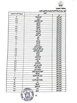 هذا وتضمنت المادة الثانية من القرار تعديل تعريفة ركوب التاكسي على أساس محاسبة العداد من بداية فتح البنديرة بمبلغ 14 جنيها ومبلغ 4 جينهات، عن كل 1 كيلو متر من المسافة المقطوعة، و15 جنيها تعريفة الركوب الجديدة لمركبات التوكتوك داخل قري المحافظة.