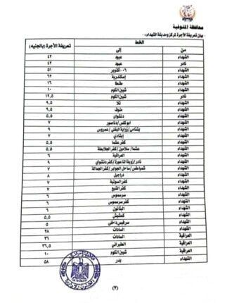 هذا وناشد محافظ المنوفية جموع المواطنين بعدم دفع أية زيادة عن التعريفة الرسمية المعلنة والإبلاغ الفوري عن أي سيارة تخالف التعليمات من خلال الاتصال بغرفة العمليات المركزية بمركز سيطرة الشبكة الوطنية للطوارئ والسلامة العامة بالديوان العام علي الأرقام التالية (2239804- 2224899 - 2222035 )، وغرف عمليات المرور ( 2316985- 2317017)، ومديرية التموين( 2174039-2174037)، والخط الساخن ١١٤