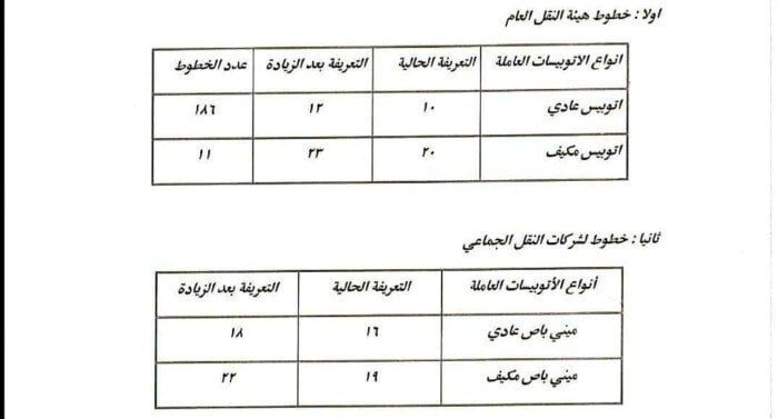 - سعر الأتوبيس العادي 12 جنيها بدلا 10 جنيهات.
