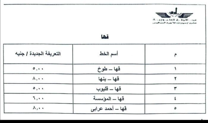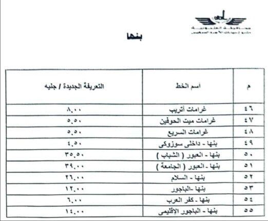 تعريفة الركوب الجديدة في محافظة القليوبية
