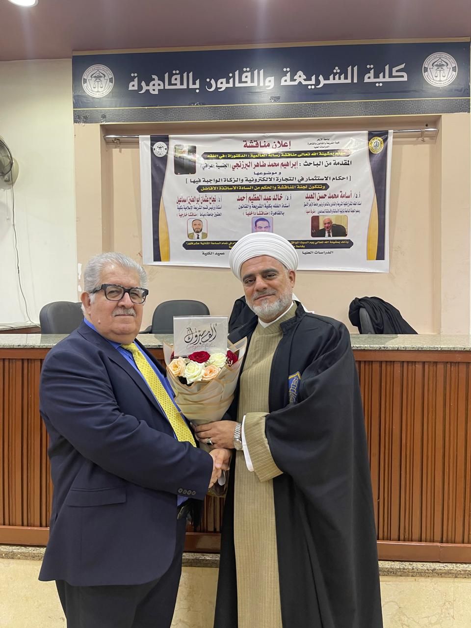 حصل الباحث الكردي إبراهيم البرزنجي، على درجة الدكتوراه في الشريعة الإسلامية مع مرتبة الشرف، من كلية الشريعة والقانون بجامعة الأزهر، عن رسالة بعنوان “أحكام الاستثمار في التجارة الإلكترونية والزكاة الواجبة فيها”.