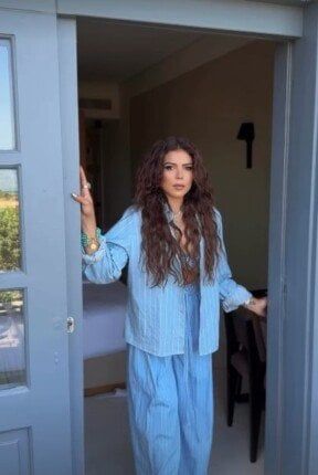 وخلال حضورها فعاليات اليوم الرابع، من المهرجان السينمائي، ظهرت ناهد السباعي ببيجامة مخططة باللون السماوي، لتخطف الأنظار، وتركت شعرها منسدلا على كتفيها، مما أعطى للإطلالة طابعا شبابيا مميزا.