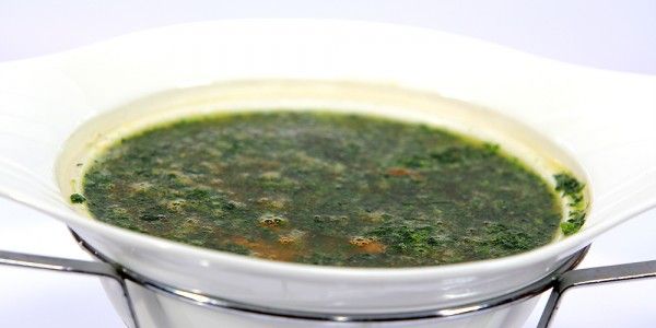 ذوبي الملوخية في حلة المرقة أو الشوربة على النار.