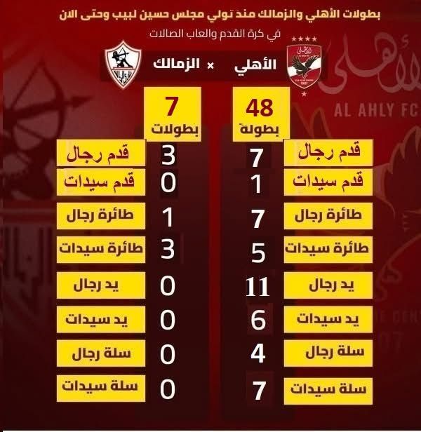 واضاف ؛"توج الأهلي بـ 48 بطولة في الالعاب الجماعية مقابل 7 بطولات فقط للزمالك".