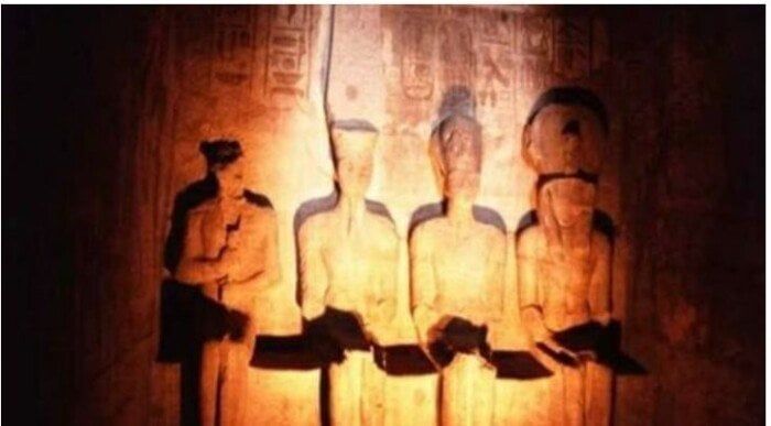 بدوره، قال الدكتور أحمد مسعود كبير مفتشى أثار أبوسمبل بأسوان، إن الظاهرة الفلكية، حدثت مع ضوء أول شعاع شمس مع بداية هذا اليوم، حيث إخترق شعاع الشمس جدران وصالات معبد رمسيس الثانى بمدينة أبوسمبل، التى ترتفع إلى مسافة تزيد عن 60 مترا، لتصل إلى قدس الأقداس، مكونة ما يشبه بفيض من النور على تمثال الملك الفرعونى رمسيس الثانى، ثم تكاثر شعاع الشمس بسرعة مكوناً حزمة من الضوء أضاء وجوه التماثيل الأخرى داخل قدس الأقداس، وهى تماثيل" الآلهة أمون ورع حور " التي قدسها وعبدها المصري القديم، في حين لم تصل الشمس إلى تمثال الأله بتاح الذى كان يعتبره القدماء "إله الظلام".