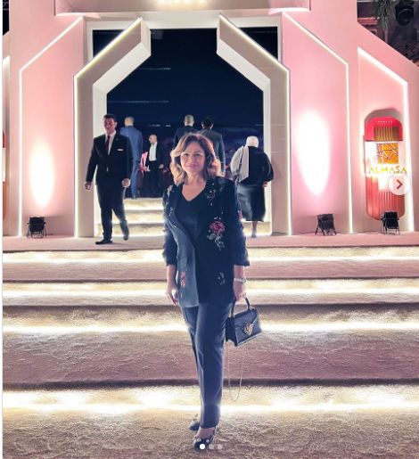 تألقت إلهام شاهين في الصور بإطلالة كلاسيك، حيث ارتدت بدلة باللون الأسود المزينة ببعض نقوشات الورد التي زادت من أناقتها.