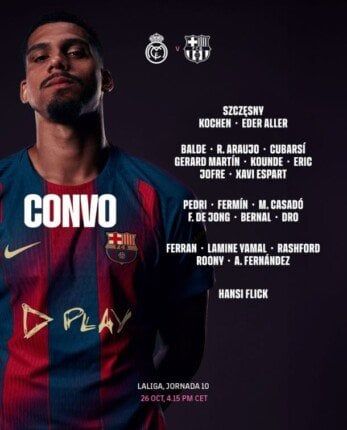 أعلن هانز فليك المدير الفني لبرشلونة، عن قائمة الفريق، وذلك لمواجهة ريال مدريد، غدًا الأحد، في قمة الجولة العاشرة من الدوري الإسباني.