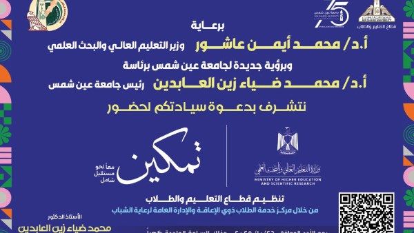 ينظم قطاع التعليم والطلاب بجامعة عين شمس ممثلا في مركز خدمة الطلاب ذوي الإعاقة والإدارة العامة لرعاية الشباب فعاليات مبادرة "تمكين.. معًا نحو مستقبل شامل".