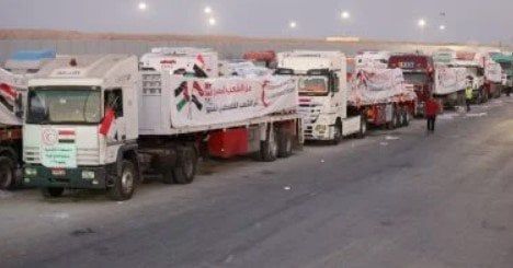 وقال مصدر مسؤول بميناء رفح البري بمحافظة شمال سيناء اليوم الأحد إن شاحنات المساعدات الإنسانية ضمن القافلة الـ 58 من زاد العزة من مصر إلى غزة بدأت في الدخول من ميناء رفح البري حاملة مواد إغاثية متنوعة من السلال الغذائية والدقيق والمستلزمات الطبية، إلى جانب دخول معدات ثقيلة لإزالة الركام.. مشيرا إلى أن الشاحنات تخضع للتفتيش من سلطات الاحتلال الإسرائيلي قبل دخولها إلى القطاع.