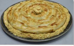 يرص في صينية فرن ثم يدهن بالسمنة ويوضع خليط البيض واللبن
