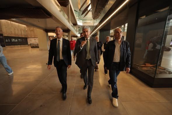 ورافق الوزير خلال هذه الجولات كل من الدكتور أحمد غنيم الرئيس التنفيذي لهيئة المتحف المصري الكبير، ورنا جوهر مستشار الوزير للتواصل والعلاقات الخارجية والمُشرف العام على الإدارة العامة للعلاقات الدولية والاتفاقيات بالوزارة، والدكتور عيسى زيدان مدير عام الترميم ونقل الآثار بالمتحف.