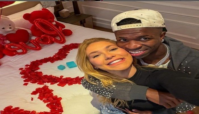 ونشر فينيسيوس وفيرجينيا عبر حسابيهما على "إنستجرام" صورًا توثّق لحظة تقدّم اللاعب بطلب خطبتها، حيث فاجأها بسرير مُزيّن ببتلات الزهور على شكل قلب، وبالونات تشكّل كلمة "Love".