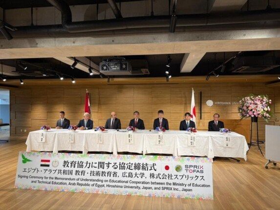وقد وقع الاتفاق من جانب جامعة هيروشيما الحكومية اليابانية ميتسو أوتشي رئيس الجامعة، كما وقع من جانب مؤسسة «سبريكس» الرئيس التنفيذي للمؤسسة تسوني ايشي، وجاء ذلك بحضور الدكتور هاني هلال الأمين العام للشراكة المصرية اليابانية للتعليم.