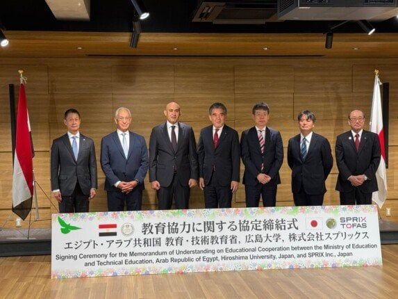 أجرى محمد عبد اللطيف، وزير التربية والتعليم والتعليم الفني، زيارة لدولة اليابان وقع خلالها مذكرة تفاهم مع جامعة هيروشيما، التي تعد أكبر وأشهر الجامعات الحكومية اليابانية، ومؤسسة «سبريكس» لمنح طلاب مصر شهادة في البرمجة والذكاء الاصطناعي على منصة «كيريو» اليابانية معتمدة من الجامعة، والتي تعد الخطوة الأولى من نوعها في منظومة التعليم المصري.