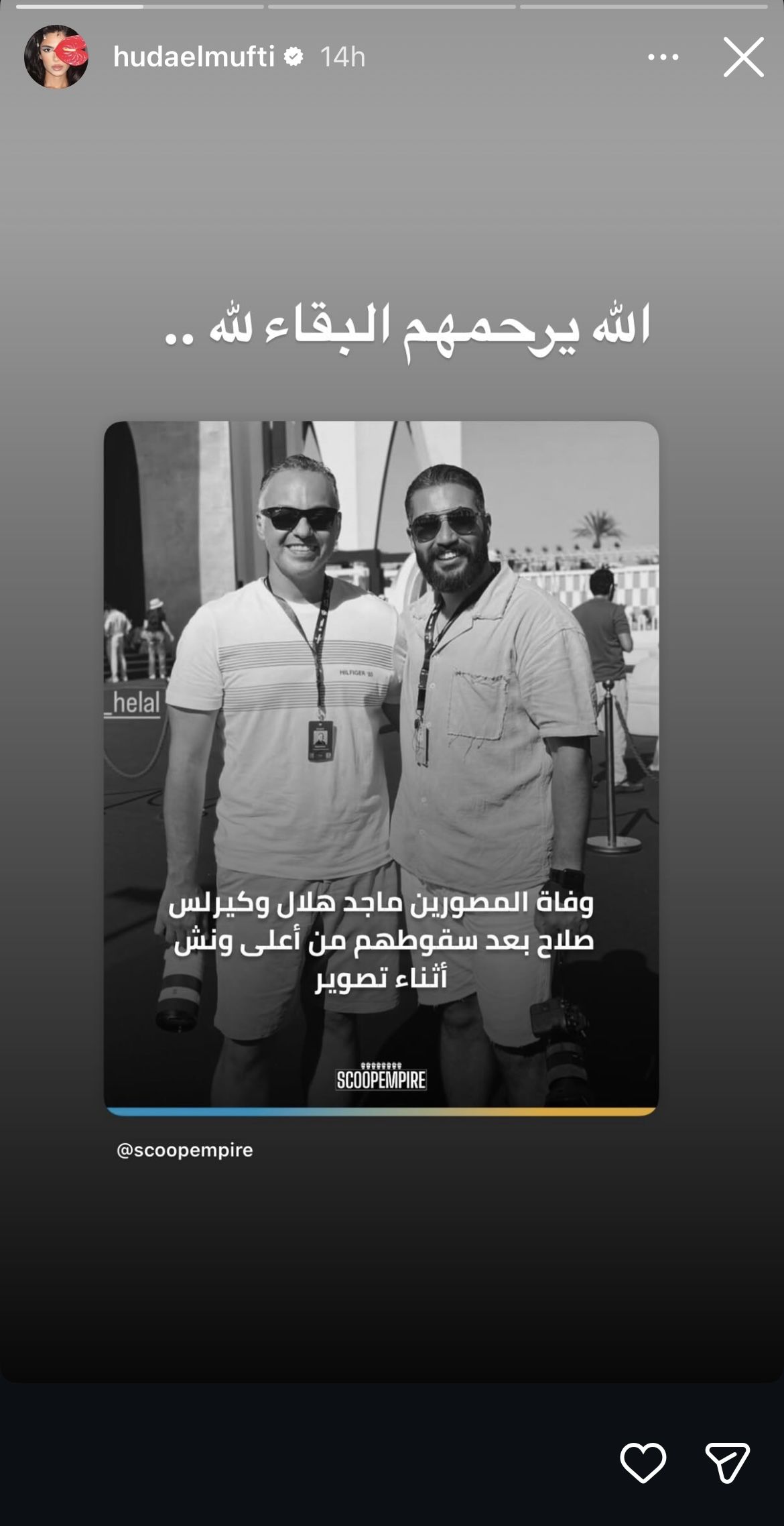 وكتبت هدى المفتي عبر حسابها على انستجرام: “البقاء لله ربنا يرحمهم”.