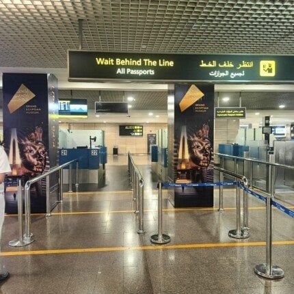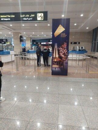 وفي الوقت ذاته، رفع مطار القاهرة الدولي درجة الإستعداد القصوى بجميع مباني الركاب (1، 2، 3، و4) لإستقبال كبار الزوار والوفود الرسمية وضيوف مصر من مختلف الدول، من خلال تنفيذ خطة تطوير شاملة، حيث تم تجهيز كاونترات مخصصة للوفود القادمة، ووضع بانرات تعريفية متعددة اللغات عن المتحف المصري الكبير، فضلًا عن تشكيل فرق عمل إضافية فى كل التخصصات لتسهيل اجراءات السفر والوصول للوفود المشاركة، لاسيما زيادة فرق العمل من منسقي الصالات والعلاقات العامة داخل مباني الركاب، لتأمين التشغيل وتقديم الدعم الفوري عند الحاجة، ضمن خطة شاملة تعكس جاهزية وكفاءة منظومة قطاع الطيران المدني في إدارة الأحداث الكبرى، إلى جانب عرض فيلم تسجيلي عن المتحف على شاشات المطار، وتشغيل الشاشة العملاقة (5D) أمام مبنى الركاب رقم (2) لبث مراسم الافتتاح مباشرة.