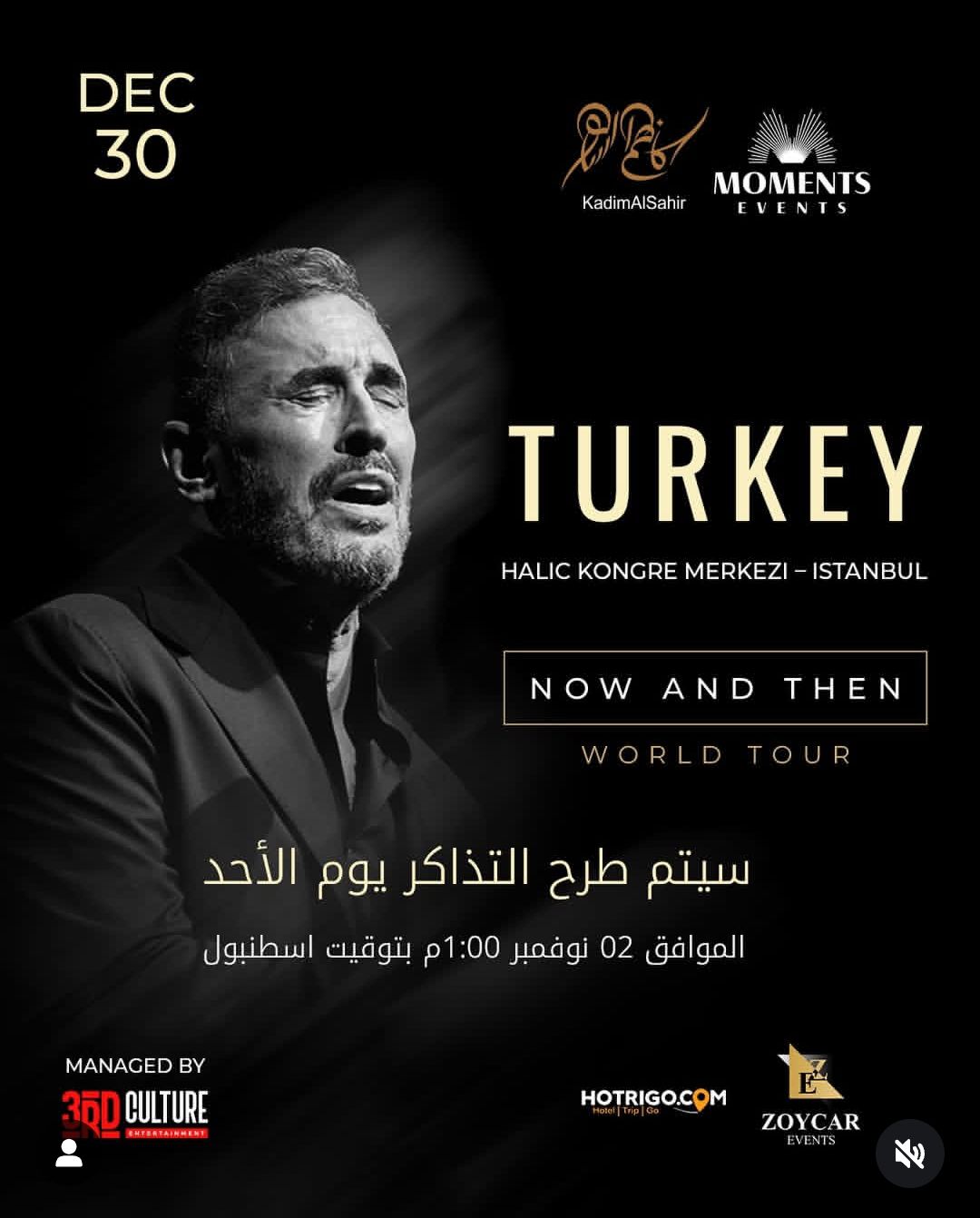 وأعلنت الشركة المنظمة لحفل كاظم الساهر، في اسطنبول بـ تركيا، عن طرح تذاكر الحفل للحجز الإلكتروني للجمهور، بعد غد الأحد 2 نوفمبر.