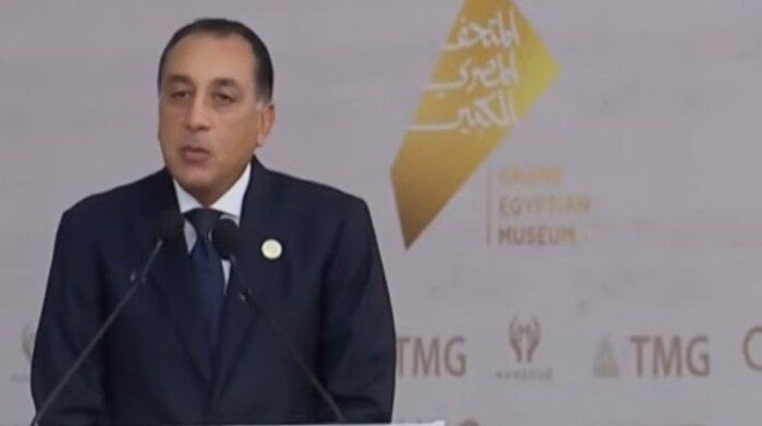 وقال «مدبولي» في كلمته بالمؤتمر الصحفي المنعقد قبيل افتتاح المتحف المصري الكبير: إننا نشهد اليوم حدثا فريدا واستثنائيا وهو افتتاح المتحف المصري الكبير