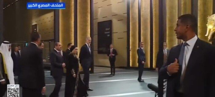 اصطحب الرئيس عبد الفتاح السيسي، وقرينته السيدة انتصار السيسي، الضيوف المشاركين في حفل افتتاح المتحف المصري الكبير، في جولة داخل المتحف.