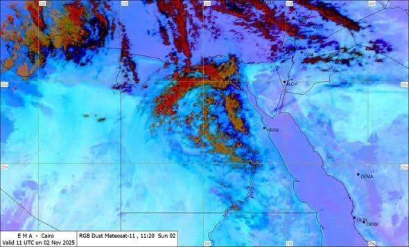 حذرت الهيئة العامة للأرصاد الجوية، من حالة الطقس اليوم الأحد 2 نوفمبر 2025، والظواهر الطبيعية المتوقع أن تشهدها مدن ومحافظات مصر خلال الساعات القادمة.