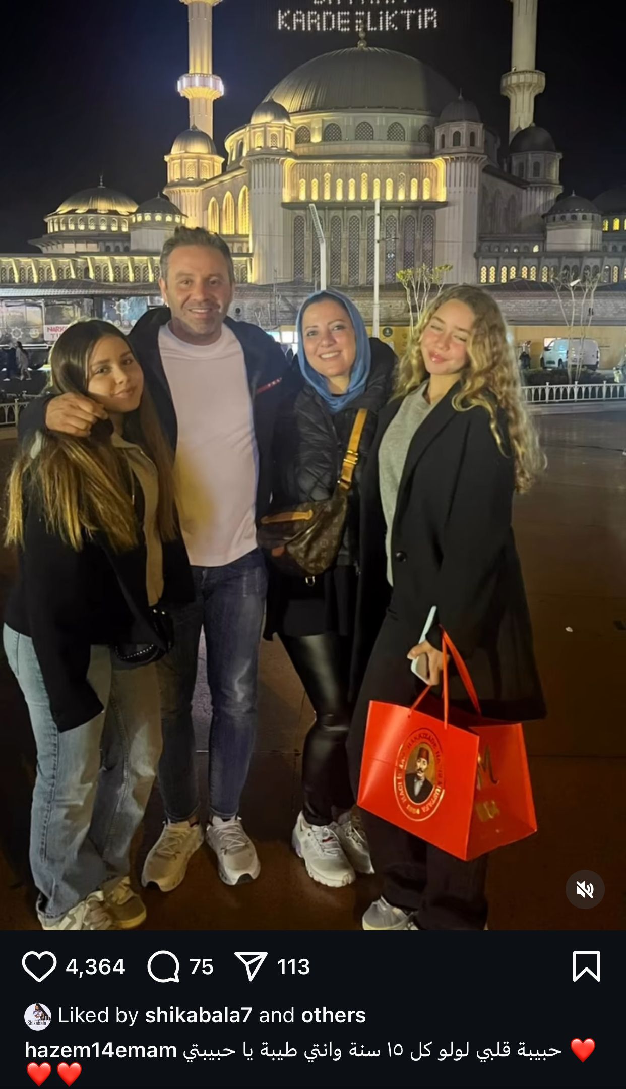 حرص حازم إمام نجم الزمالك السابق، على تهنئة ابنته بعيد ميلادها الـ ١٥.