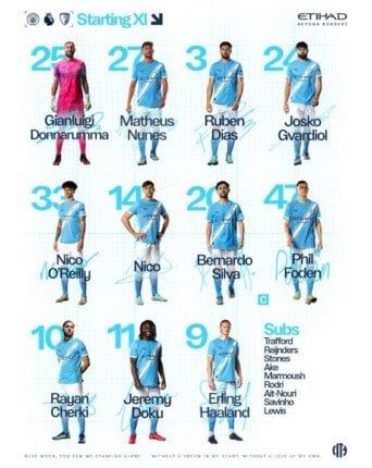 تشكيل مانشستر سيتي الرسمي لمواجهة بورنموث بالدوري الإنجليزي الممتاز
