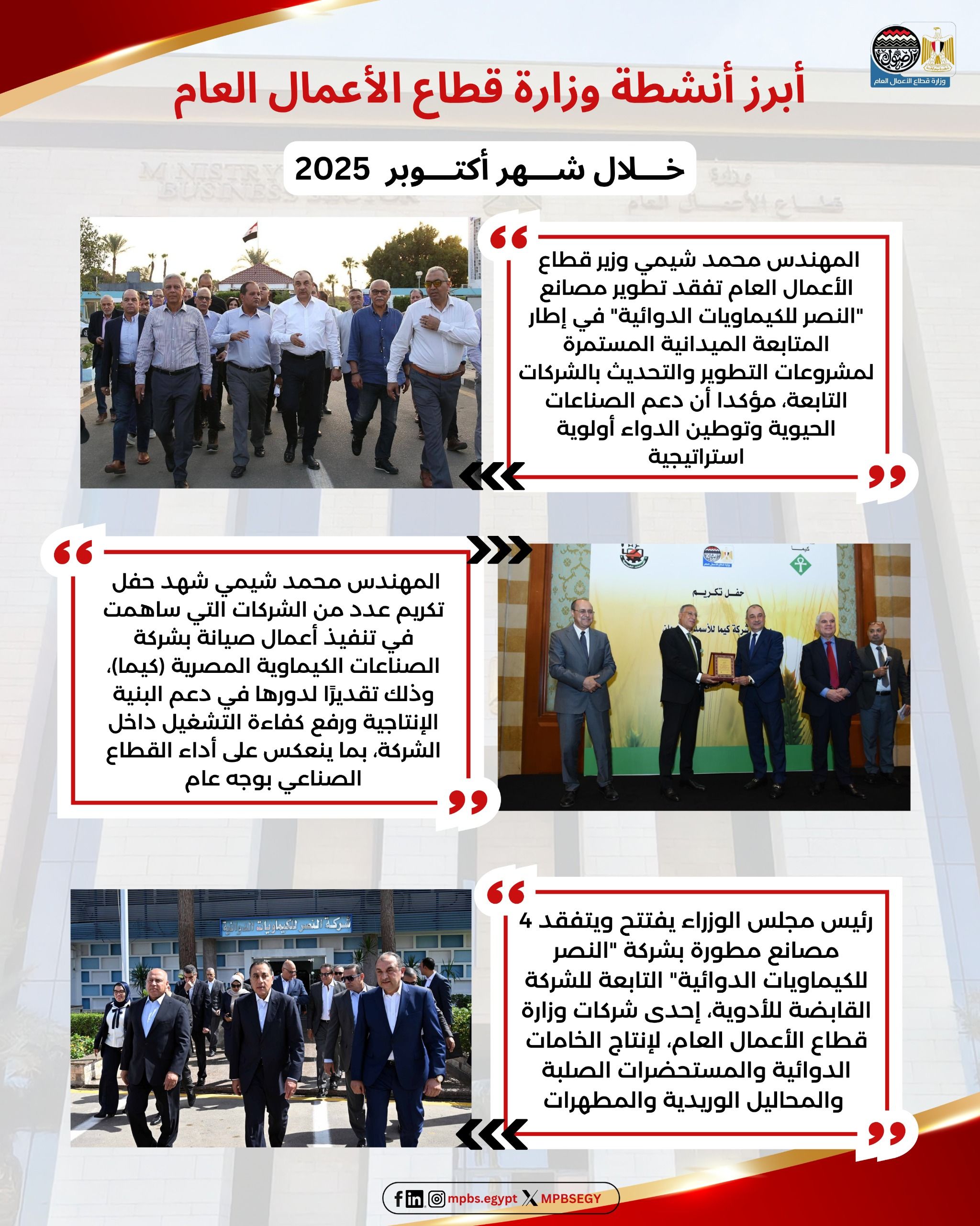 نشاط وزار قطاع الأعمال العام خلال أكتوبر الماضي