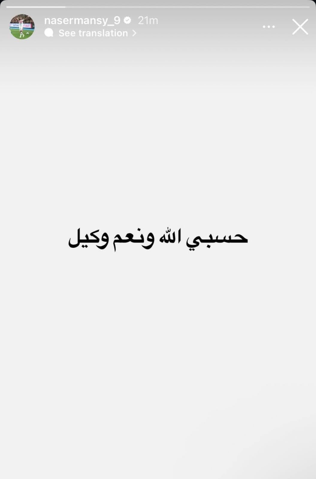 وعلق ناصر منسي عبر حسابه الرسمي على موقع التواصل الاجتماعي انستجرام : «حسبي الله ونعم الوكيل»