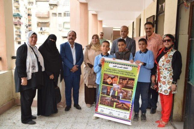 مدير تعليم بورسعيد مع طلاب مدرسة عمر مكرم