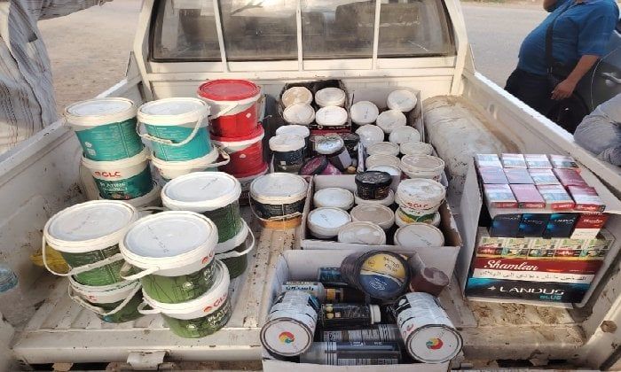 كما تمكنت الحملة من ضبط 950 كجم من الدقيق البلدي المدعم المخصص للمخابز البلدية، قبل بيعه في السوق السوداء، بواقع 12 شيكارة زنة 50 كجم، بالإضافة إلى 71 عبوة دهان منتهية الصلاحية مختلفة الأنواع والأحجام داخل أحد محال الدهانات.