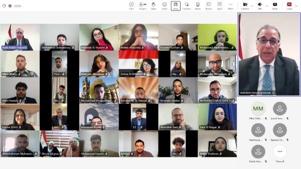 عقد السفير نبيل حبشي نائب وزير الخارجية والهجرة وشئون المصريين بالخارج لقاءً افتراضياً مع مجموعة من الشباب المصريين الدارسين بالخارج فى عدد من الدول ومنها فرنسا وروسيا وايطاليا والمملكة المتحدة واستراليا وغيرها أعضاء شبكة YENA وهى الشبكة المخصصة لربط شباب المصريين الدارسين بالخارج وتضم عدد كبير من شباب الباحثين والطلاب المصريين المتميزين في مختلف التخصصات، وذلك في إطار حرص الحكومة المصرية على تعزيز التواصل مع أبنائها في مختلف دول العالم، وفي ضوء الأهمية التي توليها لرعاية أبنائها من الشباب فى الخارج وربطهم بوطنهم الأم وتعزيز روح الانتماء لديهم.