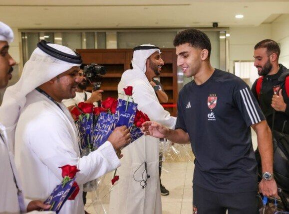 نشرت الصفحة الرسمية للنادي الأهلي، استقبالًا حارًا بالورود من الجمهور الإماراتي لبعثة الفريق في الفندق، وذلك بعد الوصول إلى فندق الإقامة استعدادًا للمشاركة في بطولة السوبر المصري.