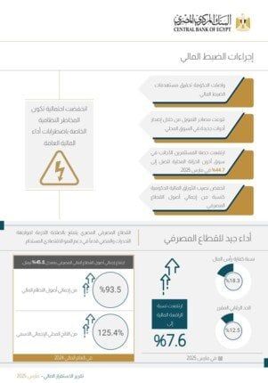 أظهر تقرير الاستقرار المالي الصادر عن البنك المركزي المصري في أكتوبر 2025 استمرار النظام المالي المصري - بمكونيه المصرفي وغير المصرفي - في أداء الوساطة المالية خلال العام المالي 2024 وحتى الربع الأول من عام 2025، وذلك من خلال توفير التمويل اللازم لكافة القطاعات وتقديم المنتجات المالية المتنوعة بالاعتماد على ودائع القطاع العائلي المستقرة كمصدر أساسي للتمويل.