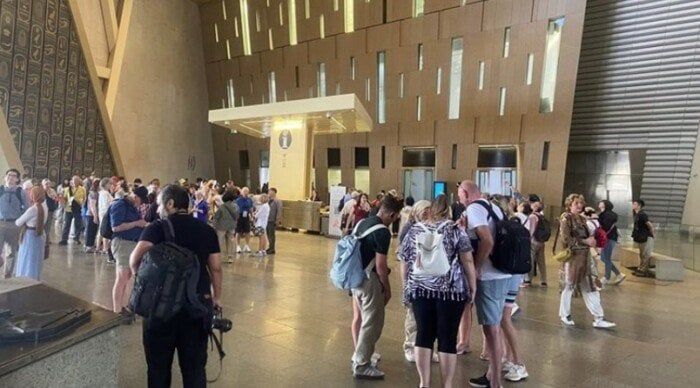 وأفادت أن منافذ التذاكر شهدت إقبالًا كثيفًا منذ الصباح، حيث يصطف الزوار في طوابير طويلة لشراء التذاكر والدخول إلى القاعات، مشيرة إلى أن أكثر المناطق ازدحامًا هي قاعة الملك توت عنخ آمون نظرًا لما تحتويه من تفاصيل دقيقة وألوان مذهلة لقطع المجموعة الذهبية الشهيرة.