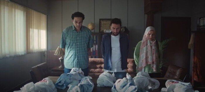واستكملت الأحداث مع لحظة الولادة، حين اكتشف سلام أن عدد أطفاله بلغ سبعة بدلًا من خمسة، ليرد بذهول للطبيبة التي طمأنته بأن الطفلين الإضافيين «كانوا مختبئين خلف الخمسة» في فحوصات السونار السابقة، وتختتم الحلقة بتهنئتها له، قائلة: «مبروك يا أستاذ.. بقيت أب لسبعة!».