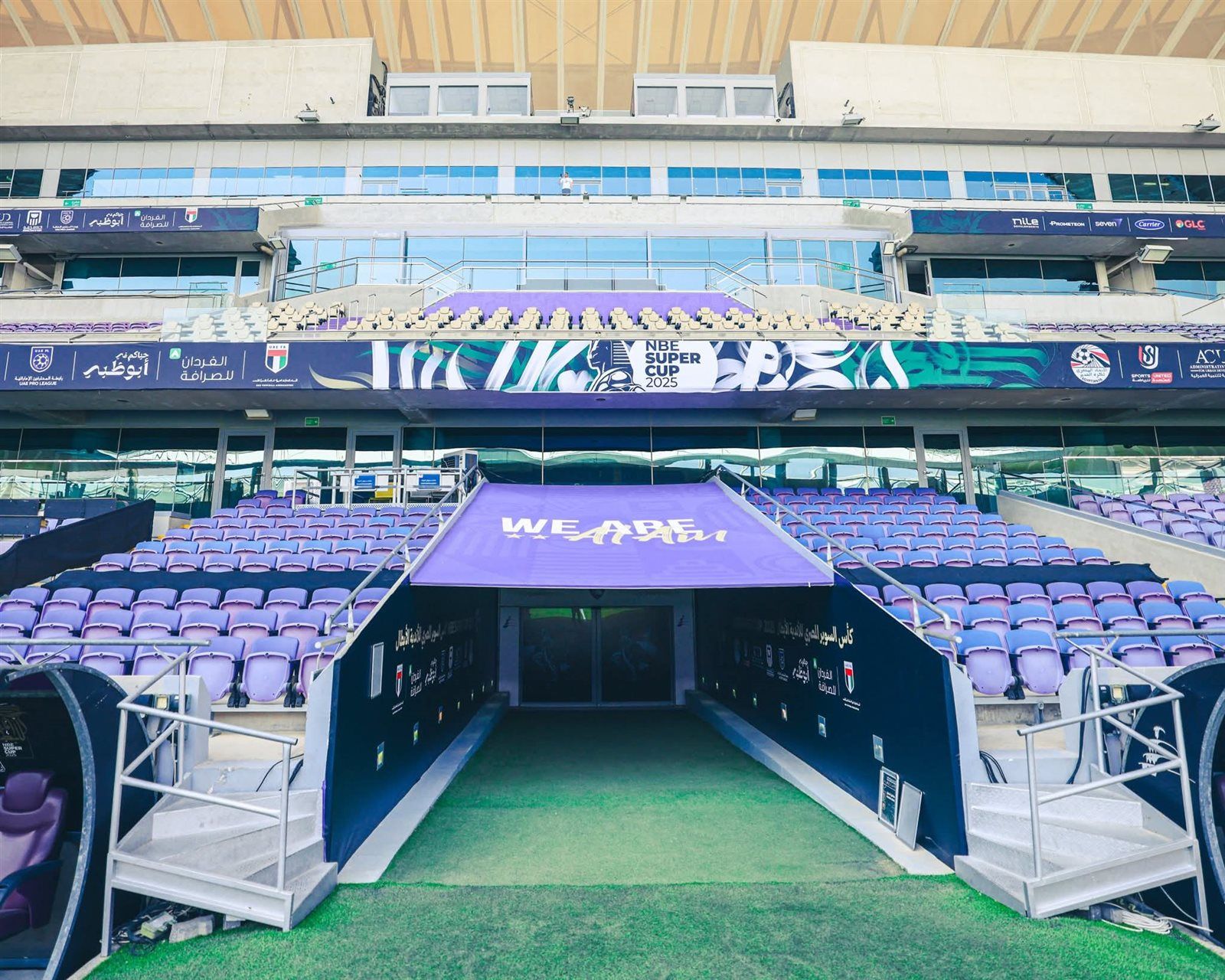 ونشر الحساب الرسمي للنادي الأهلي صور لملعب هزاع بن زايد وعلق عليها: استاد هزاع بن زايد جاهز لمواجهة فريقنا أمام سيراميكا كليوباترا في نصف نهائي كأس السوبر المصري غدًا.