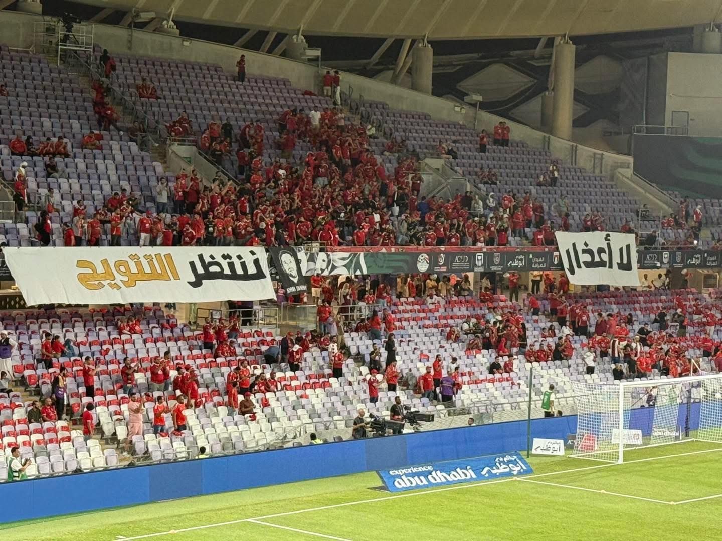 ورفعت جماهير الأهلي لافته مكتوب عليها "لا أعذار.. ننتظر التتويج".