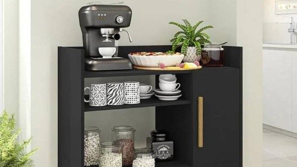 ترابيزة صغيرة أو وحدة أدراج: تكون عليها ماكينة القهوة، الغلاية، والأكواب.