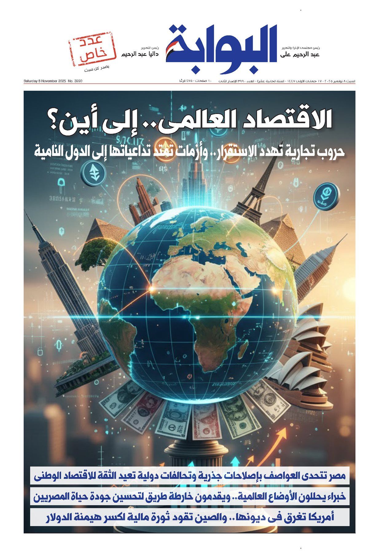 تقرأ غدًا في العدد الخاص الجديد من جريدة «البوابة»، الصادر بتاريخ السبت 8 نوفمبر 2025، مجموعة من الموضوعات والانفرادات المهمة، ومنها: