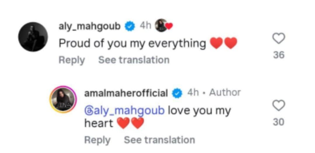 وجه رجل الأعمال علي محجوب رسالة غرام إلى الفنانة آمال ماهر، على صفحته الشخصية على موقع تبادل الصور والفيديو إنستجرام، وقال لها فخور بكِ في كل شيء.