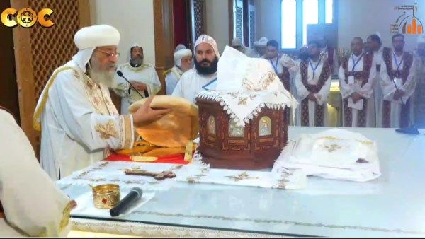 ويُبث الحدث مباشرة عبر الصفحة الرسمية للمركز الإعلامي القبطي الأرثوذكسي، وصفحة المتحدث باسم الكنيسة الأرثوذكسية ، والمركز الثقافي القبطي الأرثوذكسي ،حيث يشهد القداس طقس تدشين المذبح وأيقونات الكنيسة وسط أجواء مملوءة بالفرح والصلوات.