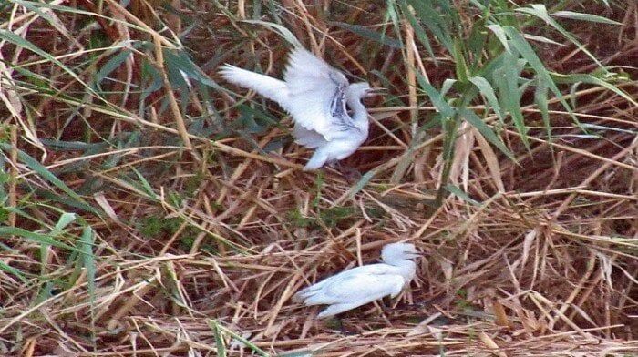 شاهدتُ أول الأسراب، كانت أعداداً كبيرة من طيور البلشون الأبيض «Egret» تقف كتماثيل الرخام على أطراف الجزر، تستعد لإكمال رحلتها. وإلى جوارها، كانت أنواع من البط البري والكيش تستريح بعد ليل طويل من الطيران. وبعد عدة أمتار تجد.مالك الحزين الرمادي «Grey Heron» ذلك الطائر الكبير والهادئ، الذى يفضل الوقوف بلا حراك لصيد الأسماك على الأطراف المائية.