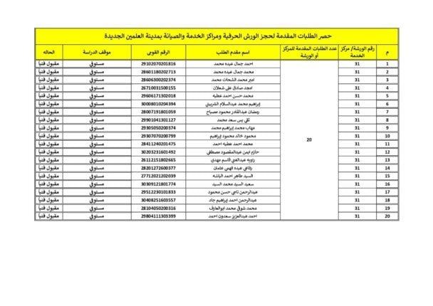 أعلن الدكتور مهندس محمد خلف الله، رئيس جهاز مدينة العلمين الجديدة والمشرف على جهاز القرى السياحية، عن إجراء القرعة العلنية لبيع 10 ورش حرفية وو21 مركز خدمة وصيانة، وذلك بين الذين انطبقت عليهم الضوابط الواردة بكراسة الشروط المعتمدة وطبقًا للكشوف المرفقة.