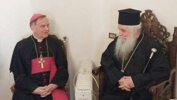 زار اليوم، رئيس الأساقفة نيقولاس هنري، السفير البابوي بمصر، المتروبوليت سيميون بابادوبولوس، رئيس أساقفة سيناء وفاران ورايثو، ورئيس دير القديسة كاترين المستقل المقدس، بجبل سيناء للروم الأرثوذكس، في زيارة تهدف إلى تقديم التهنئة الرسمية، والتعارف بين الطرفين.