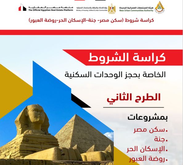وكشف المهندس شريف الشربيني، وزير الإسكان، عن طرح كراسة الشروط الخاصة بحجز الوحدات السكنية، الطرح الثاني بمشروعات «سكن مصر ـ جنة ـ الإسكان الحر ـ روضة العبور»، بعدد (2986) وحدة سكنية للتخصيص بنظام الحجز الالكتروني، والذى يأتي ضمن ما أعلنته وزارة الإسكان حول طرح 25012 وحدة سكنية، عبر «منصة مصر العقارية»، ويأتي ذلك الطرح ضمن المرحلة الثانية من أكبر طرح سكني مجمع أعدته الوزارة، والذي يتضمن نحو 400 ألف وحدة سكنية على عدة مراحل.